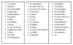 dans cette liste des valeurs tu trouveras les tiennes,tu pourras en adopter aussi